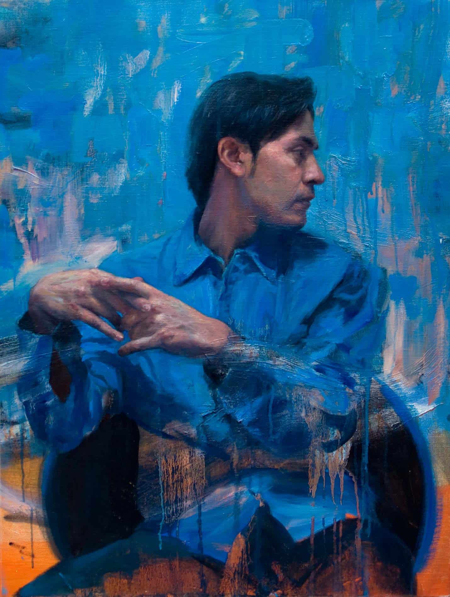 Hombre sobre fondo azul